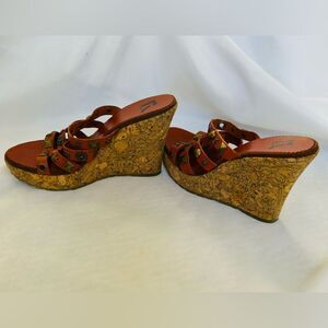 Report Kiana Platform Leather Sandals with Cork Wedge Heel Size 8.5