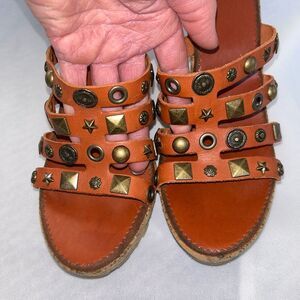 Report Kiana Platform Leather Sandals with Cork Wedge Heel Size 8.5 Studded