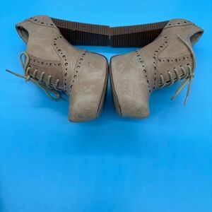 Report Leather Tan Lace Up Oxford Chunky Heels Retro Shoes Women Bootie Tan 6.5