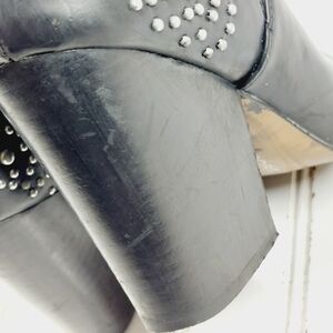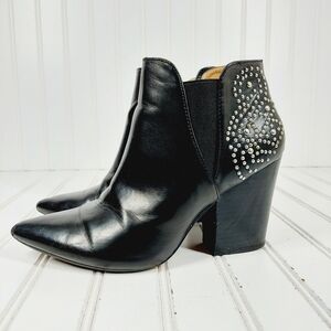 Report Mahogany Block Heel Pointy Toe Studded Ankle Boots E3
