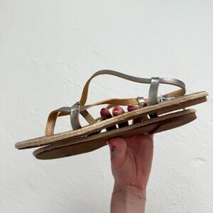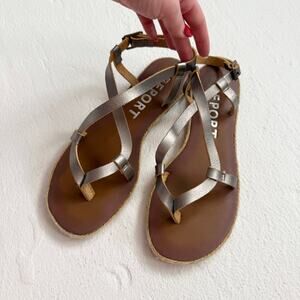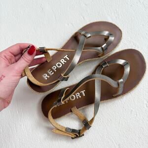 Report Metallic Silver Faux Leather Strappy Sandals, Size 6.5