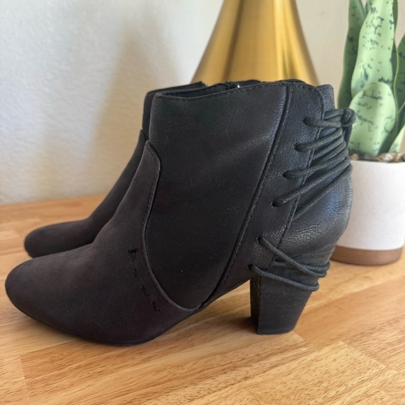 Report Milla Block Fashion Heel Booties Lace Up Zip Classic Black Size 7