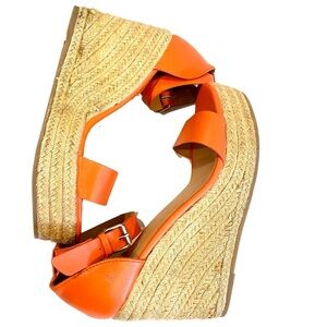 Report NEELA Orange Straw Platform Wedge Heels Sandals Size 7.5
