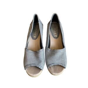 Report Open Toe Espadrille Wedge Heels Blue & White Stripe Canvas 6.5