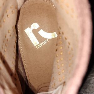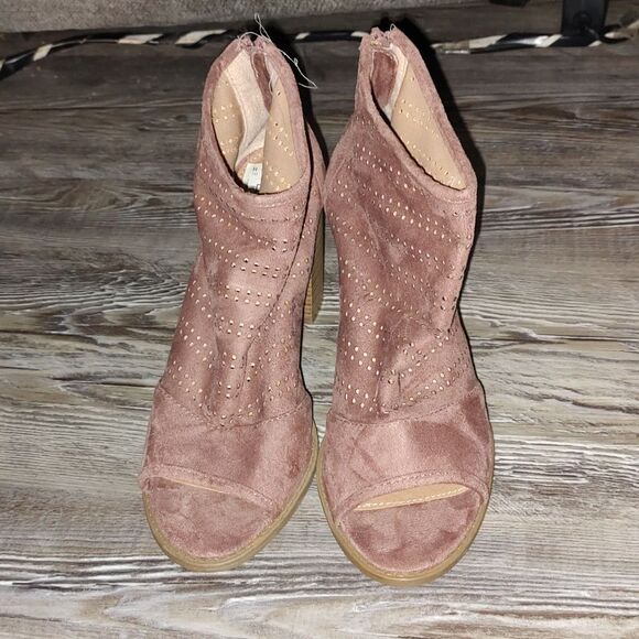 Report Padma tan peep toe ankle heeled boots Sz 7.5 NWOT