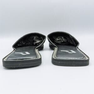 Report Rosalee Puff Slide Sandals Studded Sz 7 Black Faux Leather Square Toe