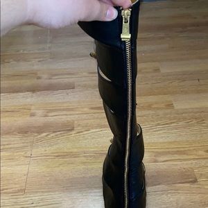 buckle detail all the way up. Real leather, zipper detail in back all the way up