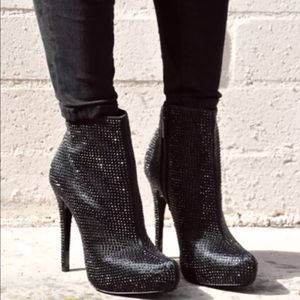 Beautiful spike heel platform ankle boots with black sparkly studs.