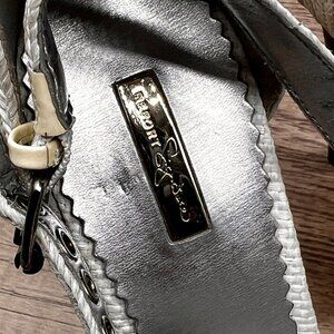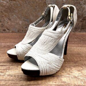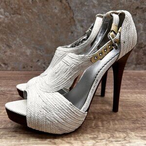 Report Signature Heels Women Sz 7.5 White Leather Dress Platform Raffia Textured
