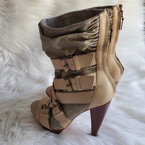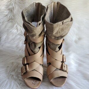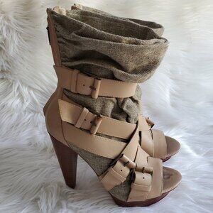 Report Signature Olive Leather Zipper Buckles Platform Boots SZ 8.5
