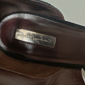 Step into timeless style with these Report Signature womens ankle strap block heel shoes. Crafted from 100% genuine suede in classic black, these heels are both chic and versatileperfect for work, evening wear, or special occasions. The secure ankle strap adds comfort and stability, while the block heel design provides all-day wearability without sacrificing elegance.