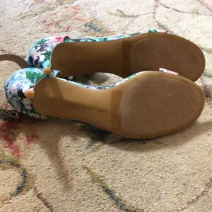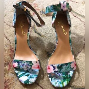 The Report Signature Zailey Blue Floral Print Kitten Heels serve up your daily dose of adorable, with a 2.75" kitten heel that tall (and all) girls can enjoy! Blue floral print fabric upper includes a simple toe strap, a curvy heel cup, and a unique ankle strap that fastens with a hidden clasp closure. Cushioned insole. Smooth rubber sole. Leather lining. Balance man made materials.NWOT