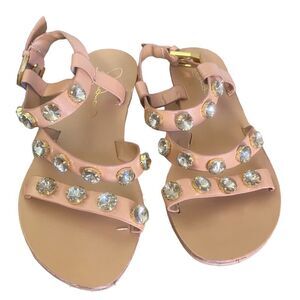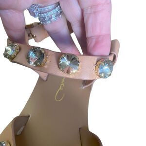 Report Signature Zoran Tan Rhinestone Sandals, ankle buckle closure