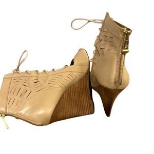 Report Signature Tan Peep-Toe Wedge Ankle Boots