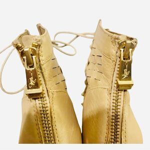 Step into style with these tan wedges from Report Signature, featuring a chic peep-toe design and a high wedge heel. The ankle boots are crafted with a front lace-up detail and decorative stitching, offering a perfect blend of elegance and comfort for any occasion.