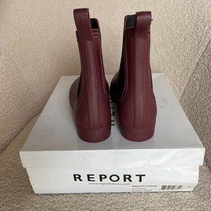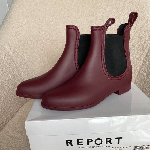 Report Slicker Chelsea Rain Boots Burgundy, brand new in box.