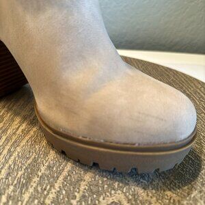 Report Tan Heeled Booties with Chain Detail, Size 6