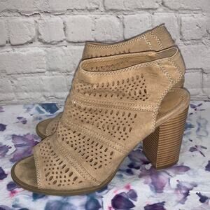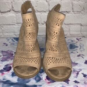 Report Tan Open Toe Laser Cut High Heel Shoes