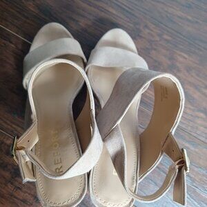 Stylish and comfortable, these Report Lawrena platform heels feature a suede upper with adjustable buckles and a sturdy wooden heel, ideal for any wardrobe.