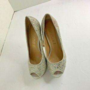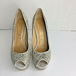 Report Womens Sz 5.5 Silver Peep Toe Bling Shoes 4.25 in Stiletto Heels Jalynn
