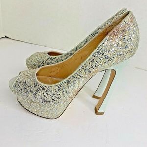 Report Womens Sz 5.5 Silver Peep Toe Bling Shoes 4.25 in Stiletto Heels Jalynn P