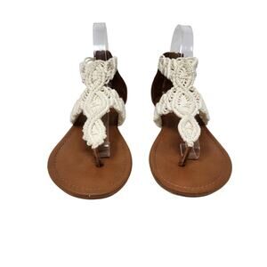 Report Zip Up Back Boho Macramé Flat Sandals Ankle Strap White Brown Size 8.5