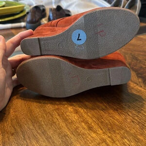 Report burnt orange wedge booties. Size 7 EUC.