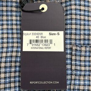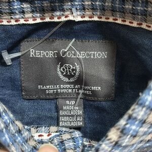Stay cozy and classic in this Report Collection flannel button-down shirt, new with tags. Size Small, featuring a soft and breathable blue and tan plaid pattern that’s perfect for layering year-round.