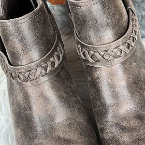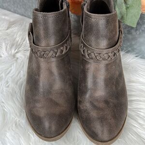 These super cute booties have only been worn one time as you can see there is very little wear on the bottoms of the shoes. Please view the pictures carefully as they are an important part of the description.
