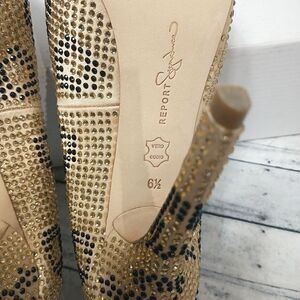 Report Signature Woman's SZ 6.5 Parker Gold Black Rhinestone Leopard Stilettos