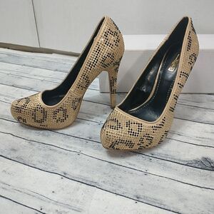 Report Signature Woman's SZ 6.5 Parker Gold Black Rhinestone Leopard Stilettos