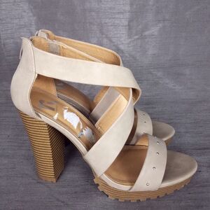 Report Tan Studded Chunky Platform Strappy Sandal High Heels Size 9.5