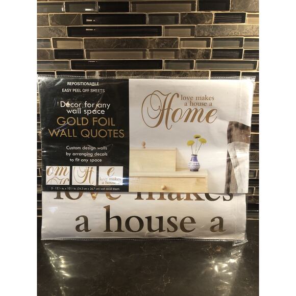 Repositionable Foil Peel & Stick Wall Decal Gold Love “Makes A House A Home”
