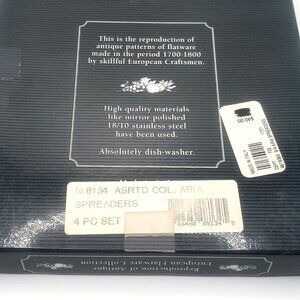 This 4-piece set of spreaders is crafted from high-quality 18/10 stainless steel and features a reproduction of antique European patterns. Manufactured in Italy, these spreaders combine elegance and functionality, making them an excellent addition to any dining collection.
