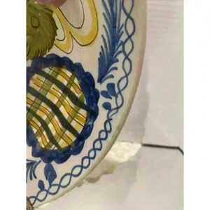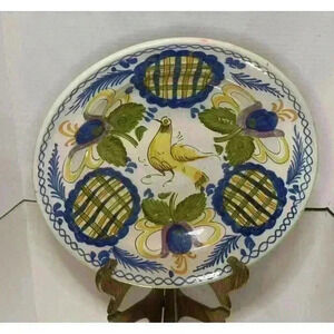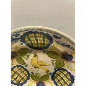 Reproduction French Faience Pottery Serving Bowl 11.5 inch Yellow Bird