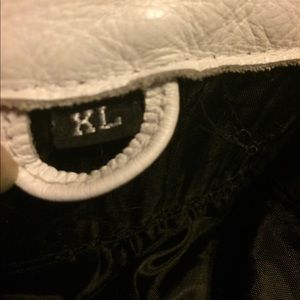 This jacket has protective elbow pads as well as a back pad as pictured. It is real leather and super heavy duty. Only shows of wear are inside the lining as also pictured but not noticeable when on!