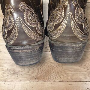 Republic Boot Co. Womens Sz 9.5 Oil Tanned Leather Brown Sparkles Embroidered