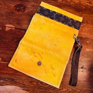 Repurposed Authentic Louis Vuitton Monogram Yellow Fur Pouch