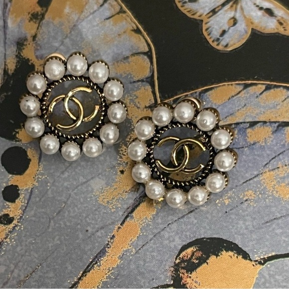 THESE ARE NOT EARRINGS MADE BY CHANEL BUT BUTTONS WHICH HAVE BEEN REPURPOSED.