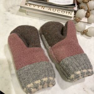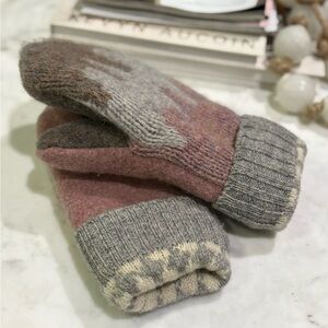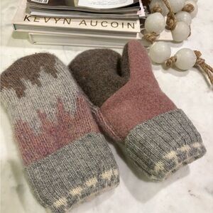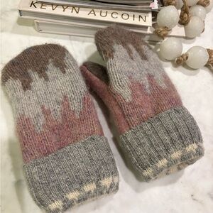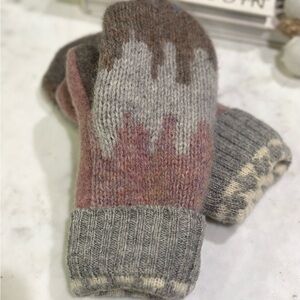 Adorable knit mittens made from wool, with soft polyester interior. Very warm. Excellent condition. One size. Fits an adult woman average hand size.