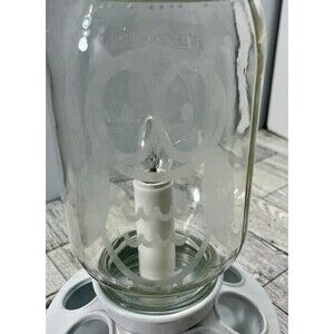 This repurposed Mason jar bird feeder lamp is a charming addition to any room. The glossy finish and blue Mason's Patent Nov 30th 1858 glass jar pattern add a touch of country, bird lovers, modern farmhouse, and boho themes. The lamp is free standing and has a mechanical control with a single setting.