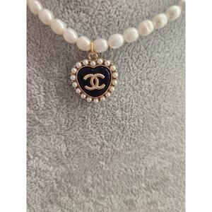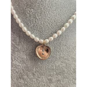Repurposed designer button with 925 Sterling Silver Cultured Freashwater Pearl Chain Necklace -16in pearl necklace