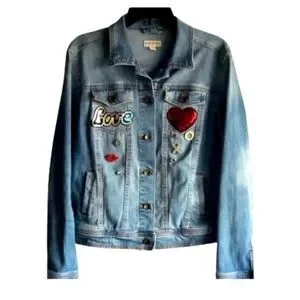 Repurposed Merona Jean jacket Love & Kisses♥️. Size Large