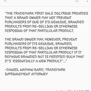 @aliciawoodson I'm not selling anything thats infringing on trademarks, but if anyone does sell a product in a different form than originally sold, they would have to list it with a disclaimer like that and sell it without 'Louis Vuitton' as the brand