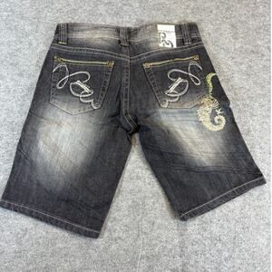 Request Bermuda Shorts Womens Size 26 Black Denim Stretch Hip Hop Grunge Y2K