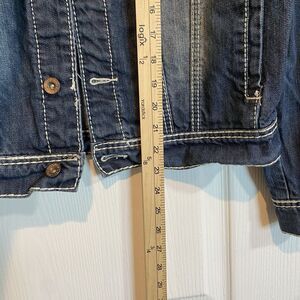 Request Y2K Denim Jacket Mens Small Grunge Rocker Streetwear Retro Preppy Cosy