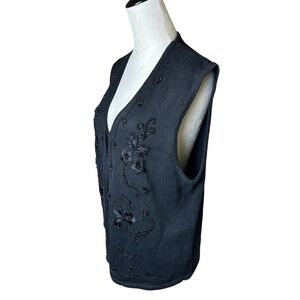 Keywords: y2k vest, beaded vest, floral embroidery, vintage black vest, goth aesthetic, boho layering piece, minimalist vest, retro vest, 90s fashion, dark academia style, grannycore, cottagecore, preppy layering