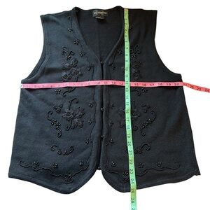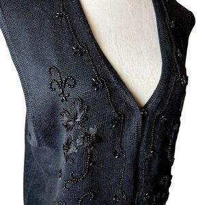 Requirements Black Beaded Floral Embroidered Knit Vest XL | Y2K Goth Grannycore