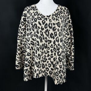 Requirements Leopard Print Top 2X Cotton Crewneck Casual