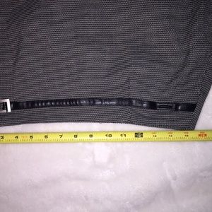 Black and white patterned straight skirt with attached belt. Size 10. 54% polyester, 33% rayon and 3% spandex. Skirt is approximately 32" long with 13" front slit. A perfect staple of your business wardrobe. See photos for other flat lay dimensions